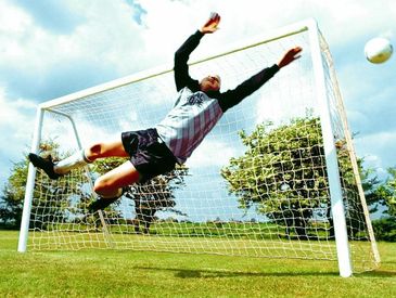 Innovative safer football equipment including 'Anti vandal' steel goal posts, roller goals, folding goals with transporter wheels, affordable movable aluminium goals, fixed position goal posts and stronger plastic football goals.